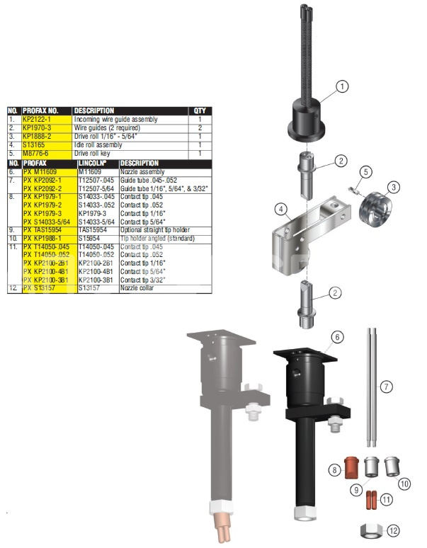 Токосъемные наконечники под диаметры .052", 1/16", 5/64", 3/32" (KP1979-2, KP2100-серия)