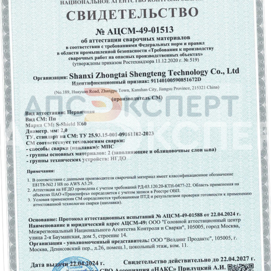 прочности K54 до К60. Включена в реестр ОВП ПАО ТРАНСНЕФТИ. НАКС.
