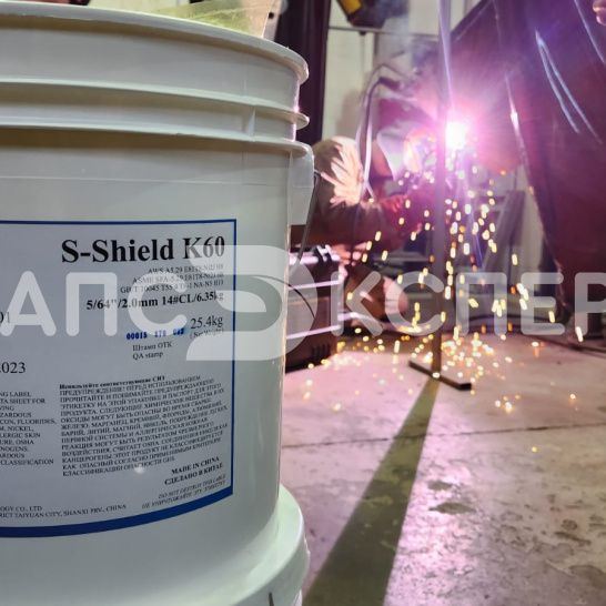 Порошковая самозащитная проволока S-Shield K60 предназначена для сварки без защитного газа ответственных конструкций из высокопрочных сталей (К54-К60). Соответствует стандартам AWS A5.29 E81T8-Ni2 и ASME SFA-5.29 E81T8-Ni2. Проволока диаметром 2.0 мм (5/64”) обеспечивает высокую производительность сварки с большим сварочным током и прямой полярностью (DCEN).